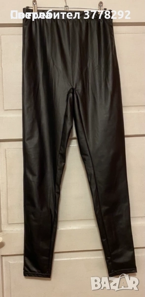 2.Черен еластичен панталон/клин от еко кожа, № 2 на снимка 1, висока талия, Р-Р L/XL Неопънато в см-Талия 80см;Ханш 96см;Дълж.100см, Намалявам го на 20 лв.