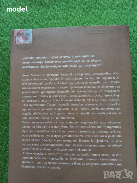 Риан Мансер е първият човек в историята, осъществил обиколка с колело на Африка. ... Риан преодолява пустинята Сахара, научава френски, португалски и арабски, яде ...