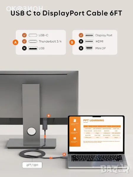 USB C към DisplayPort кабел 6FT Съвместим с iPhone 16 15 Pro Max Plus MacBook → Обява 48990888