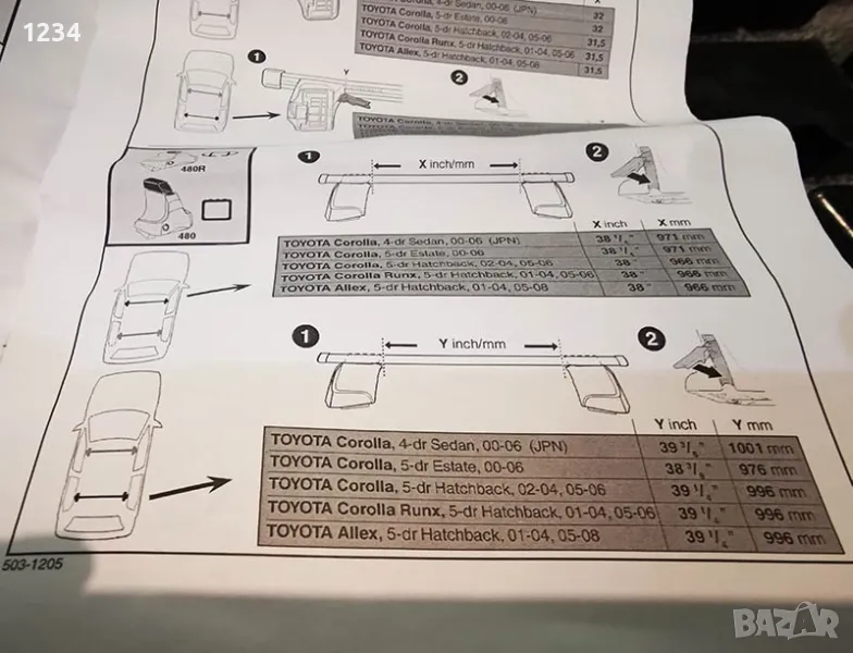 С THULE монтажен кит 1206 за TOYOTA Corolla и TOYOTA Allex