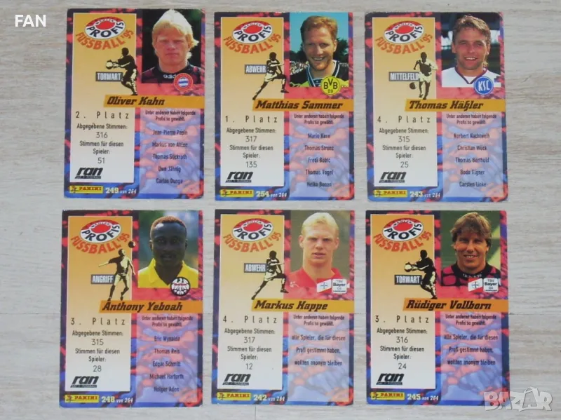 Предлагам 6 бр. карти Панини от серията PROFIS FUSSBALL '95 на следните футболисти от Бундеслигата: