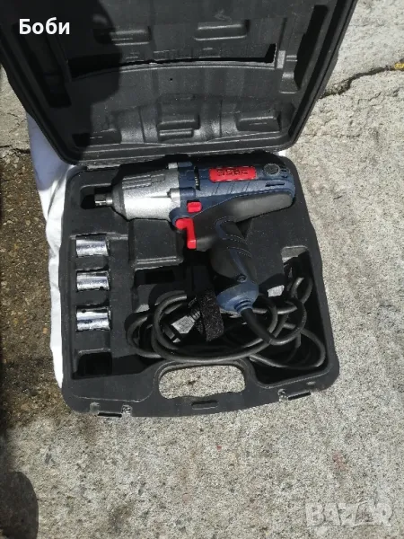 3 бр вложки 17, 19, 21 мм.Силата на завиване и развиване се регулира от спусъка. Уредът е използван 2-3пъти и е неразличим от нов. При интерес изпращам с куриер по избор, преглед и тест.