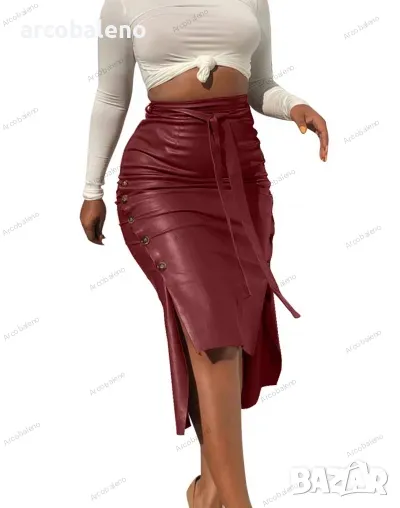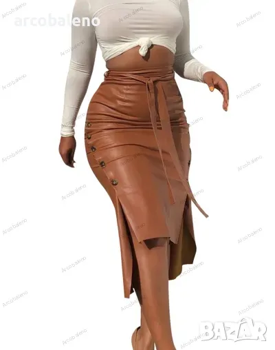 Дамска ежедневна кожена пола със средна дължина, 3цвята