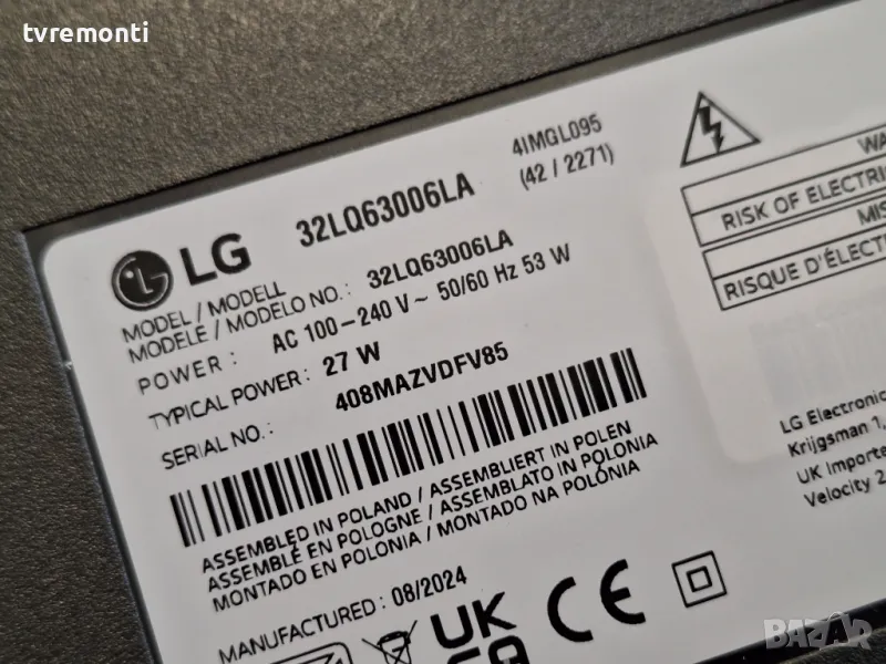 POWER BOARD ,EAX69091402(1.0),EAY64548908,LGP32D-17F1 for LG 32LQ63006LA , for DISPLAYHC320DUN-ABXL1-A1BXборда е гарантирано работещ Демонтиран от Телевизор LG модел 32LQ63006LA.със счупен дисплейHC320DUN-ABXL1-A1BXтесвана от нашия техник