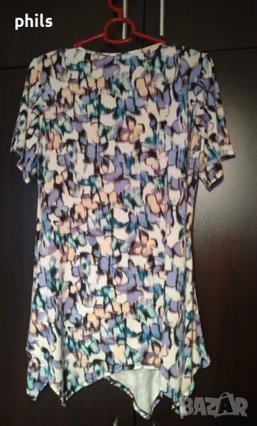 Нови туники, 3 разцветки. Оранжева дължи на в най късата част 66 см Бюст 46 до 54 см. се разтяга. Пеперуди и черно бяла, дължина 70 см. бюст 48-58 см. Състав на последната снимка. Цената е за бр. За две 18 лв. За всички 25 лв.