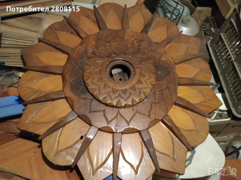 Много красива орехова дърворезба. Диаметър 0,82 см Може да се постави много здраво. На болтове. На снимката се вижда.Кръговете са три на снимката се виждат също.