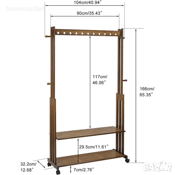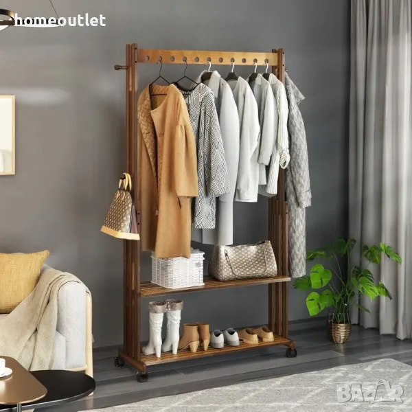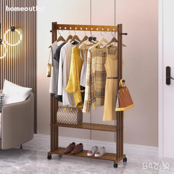 Бамбуковата стойка за дрехи е снабдена с 4 колела, които се движат плавно през всякакви подови настилки.