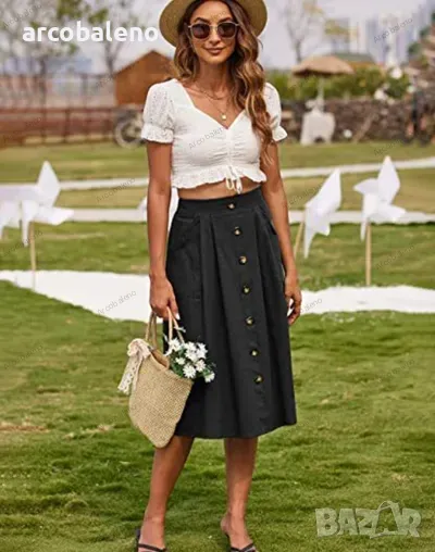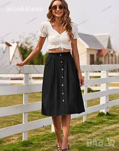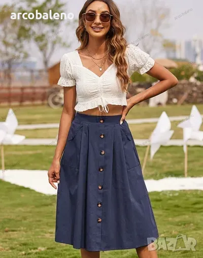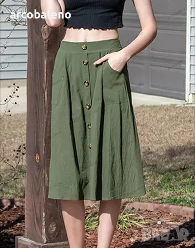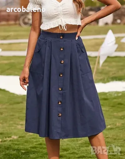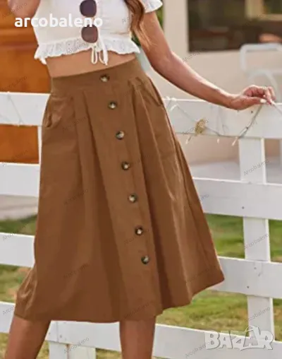 Ежедневна дамска пола с копчета и висока талия с модерен силует от мека и удобна материя. Може да се носи ежедневно, за срещи, излизане, ваканция и т.н. Методът на пране може да бъде машинно или ръчно пране. Тъканта е устойчива на набръчкване и набиване. Размерът се измерва на ръка, като е нормално да има грешка от 1-3см.