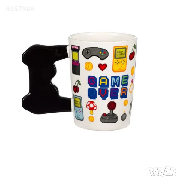 Керамична чаша за чай или кафе с дизайн на игра и джойстик дръжка. Материал на продукта: Керамика