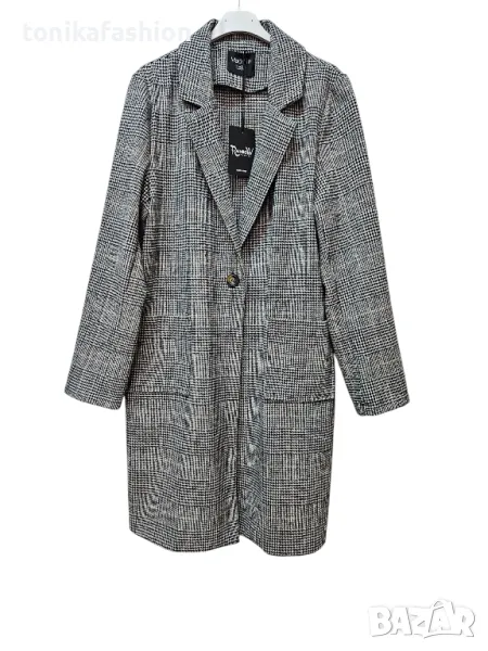 Пролетно олекотено палто с десен туид с хастар само на предницата. Прав модел с външни джобове и закопчаване с едно копче. Един размер подходящ за М и Л до макс.105 см гръдна, дължина 100см.