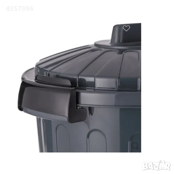 Кош за отпадъци за отпадъци с релефна лента и капак с дръжка.