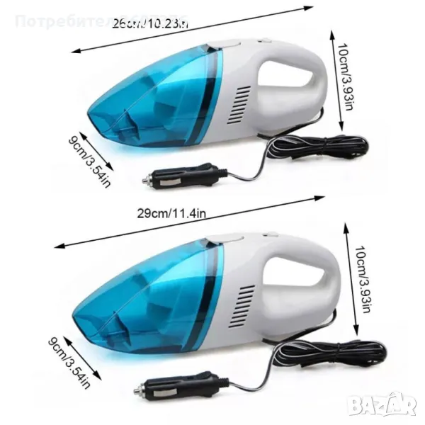 Преносима мини автомобилна прахосмукачка за сухо и мокро почистване - Почиства се лесно, защото е създадена с разглобяем до няколко елемента корпус. С голям успех, тази малка и компактна прахосмукачка, може да се използва и в къщи, чрез подходящ адаптер, за мебелите по всичките им ъгълчета и за другите недостъпни места, шкафове и библиотеки.