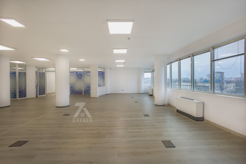 🔑 Офисът е разположен на 6-ти етаж и впечатлява с внушителната си площ от 366 кв.м. Просторното му разпределение включва четири големи кабинета, светло и функционално open space пространство, модерна нова кухня, отделна сървър стая, две самостоятелни тоалетни и тераса с гледка. Изцяло окабелен и климатизиран, офисът предлага комфорт и гъвкавост, идеални за динамичен работен процес и колективна работа.