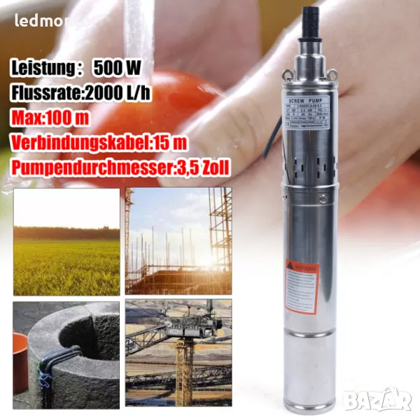 500W Подводна Помпа за Дълбоки Кладенци, Винтова Помпа