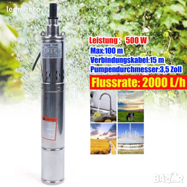 【ВАЖНИ ПАРАМЕТРИ】 - Напрежение на подводната помпа: 230V 50Hz; Дебит: 2000 L/h; Максимален дебит: 35 L/min, Максимална височина: до 100 m; Дължина на кабела: 15 m; Мощност: 500W.