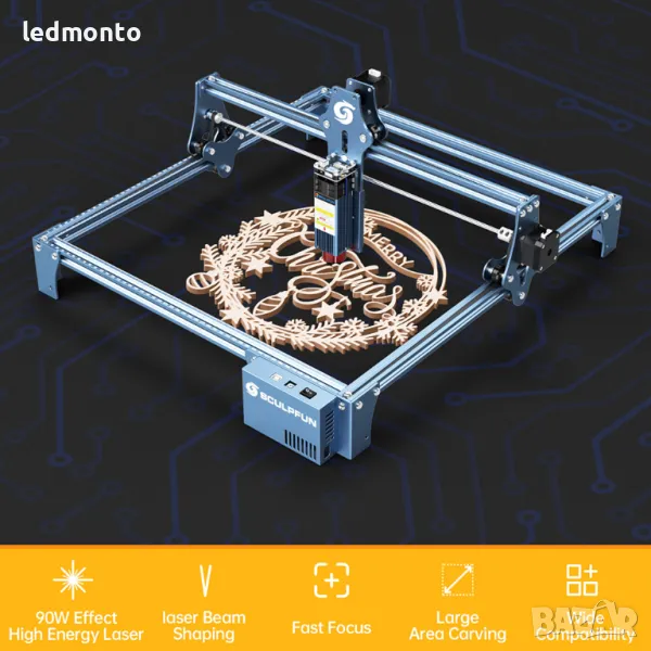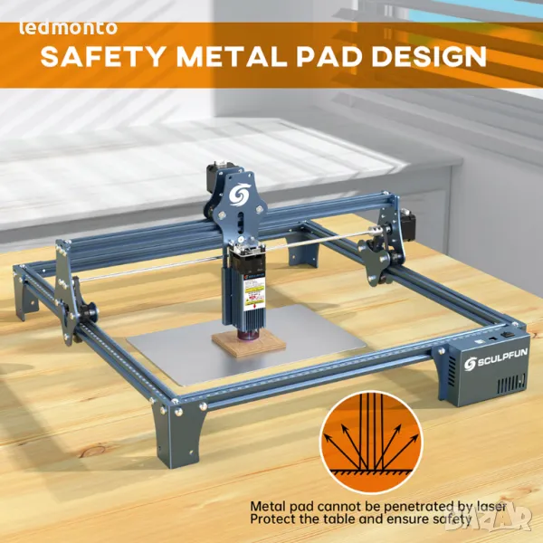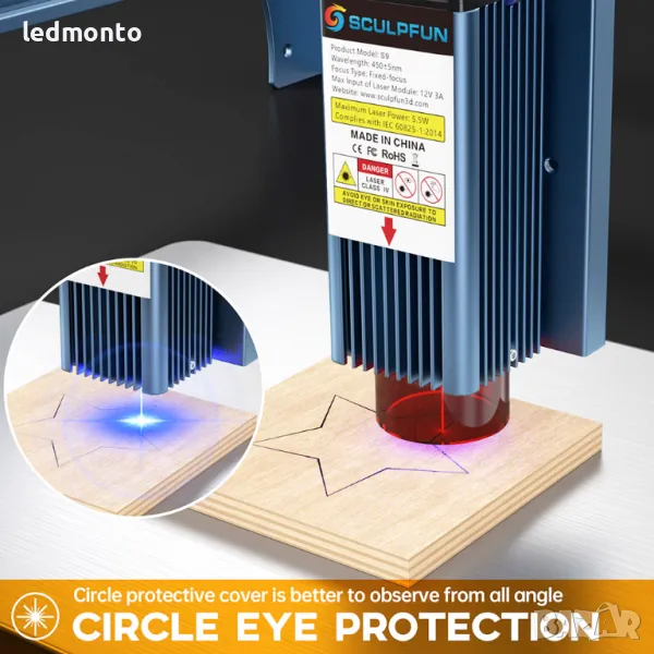 SCULPFUN S9 5,5 W Лазерен Гравьор с 0,06 mm Ултра Фино машина за лазерно гравиране