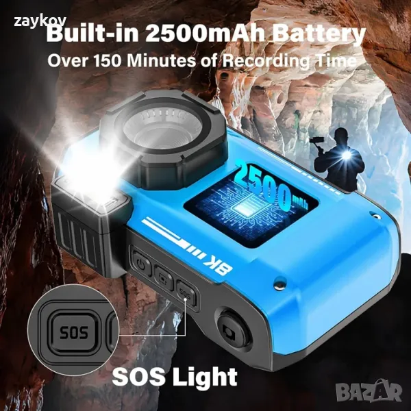 Вградена батерия от 2500 mAh и SOS светлина: Нашата подводна камера е оборудвана с батерия с голям капацитет от 2500 mAh, осигуряваща до 2,5 часа непрекъснат видеозапис. Уловете ценни моменти до насита, без да се притеснявате за живота на батерията. Във времена на опасност вграденото SOS фенерче може бързо да привлече вниманието, добавяйки допълнителен слой на безопасност. Плюс това, включената 32GB карта за съхранение може да съхрани до 8000 снимки, като гарантира, че нито един момент от вашето приключение няма да остане неуловен.