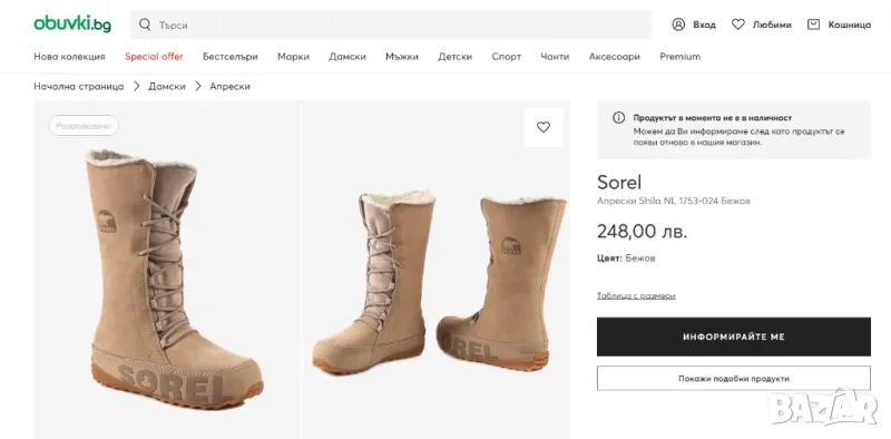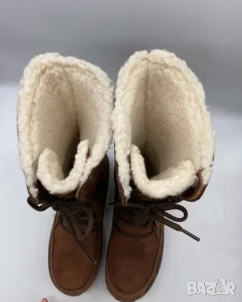 Горна част от естествена кожа, вътрешността на обувката е подплатена с мек косъм, дебела стелка с косъм. Гумената подметка осигурява отлично сцепление.