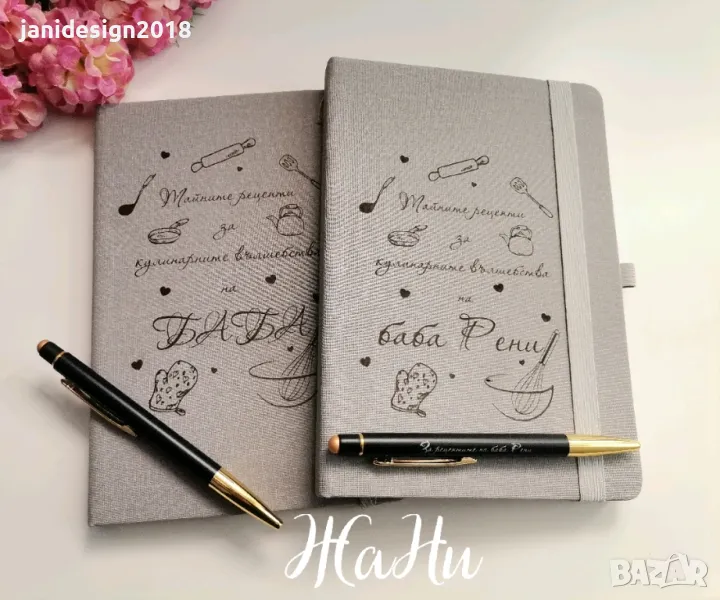 Подаръчен комплект за "Тайните рецепти на БАБА" гравирани тефтер и химикал подарък за 8ми Март → Обява 49000409