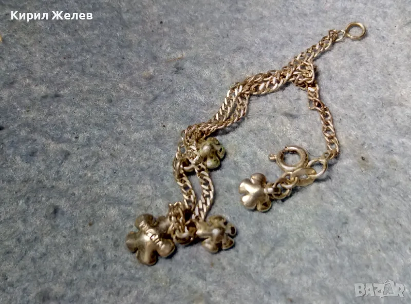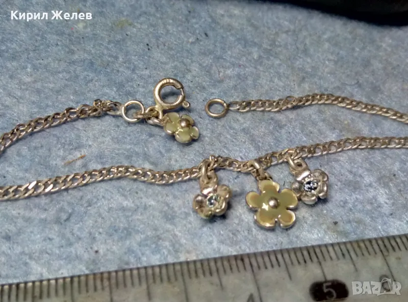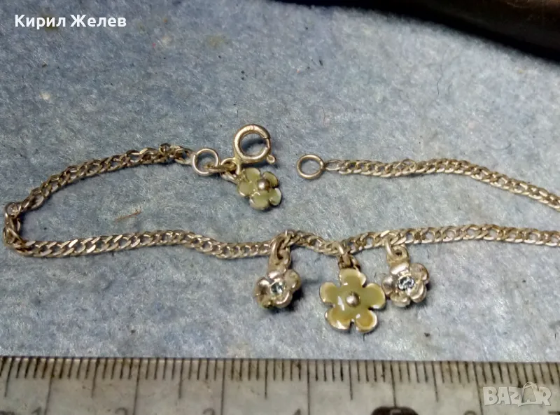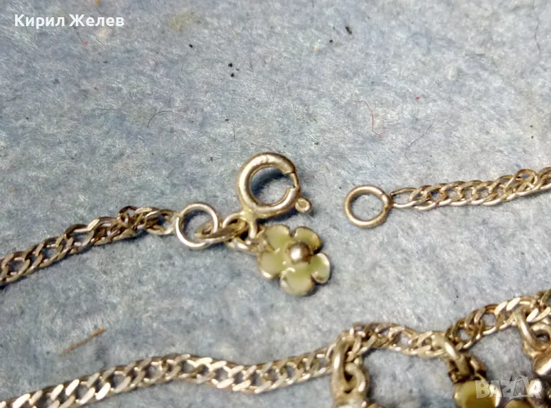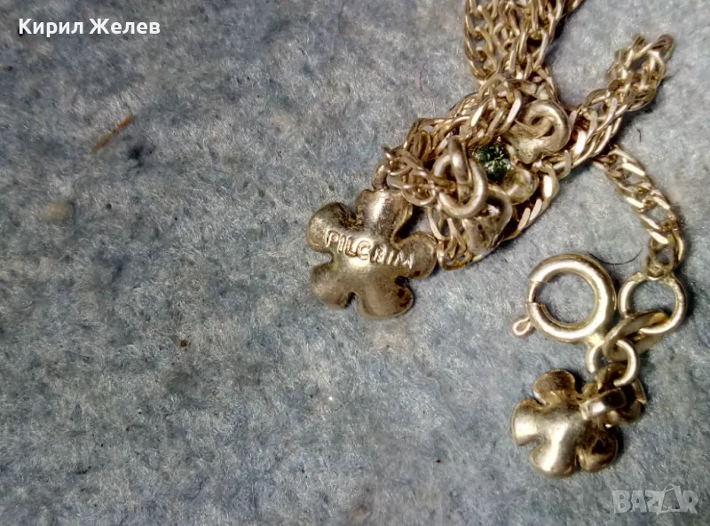 САМАТА ГРИВНА е от МАРКИРАНО / и ТЕСТВАНО! / МАСИВНО СТЕРЛИНГОВО СРЕБРО 925 ПРОБА, а ЕМАЙЛИРАНИТЕ ВИСУЛКИ - ЦВЕТЯ са СТИЛНО СЪЧЕТАНИ с НЕЯ и са ПОСРЕБРЕНИ, на ИЗВЕСТНАТА БУТИКОВА БИЖУТЕРИЙНА МАРКА PILGRIM - НАЛИЧНА е МАРКИРОВКА на НАЙ-ГОЛЯМАТА. / Пускам голяма СЕРИЯ от майсторска ръчна изработка старинни и нови СРЕБЪРНИ БИЖУТА - пръстени, обеци, медальони, гривни, ланци, колиета, брошки - някои са инкрустирани със скъпоценни или полускъпоценни камъни. Всичките са ТЕСТВАНИ ПРОФЕСИОНАЛНО върху лидийски камък с пробер - киселина за сребро, като особено по-старите, ръчно изработени и без маркировка които са, е заснето и резултата на камъка - яркочервеният цвят при натъркване и капване на киселината показва, че са от масивно СРЕБРО ВИСОКА ПРОБА. Има и накити от САЧАН /нископробна сребърна сплав, с която са работели старите майстори - куюмджии от периода на ВЪЗРАЖДАНЕТО и края на 19-ти век/, мед, бронз и благородна стомана с позлата или посребряване. Снимките ги ОНАГЛЕДЯВАТ! Имам НАД 27000 обяви в профила си - За ВСЕКИ по НЕЩО...! Изпращам по Еконт или Спиди с опция Преглед/Тест и отстъпка-транспорт.