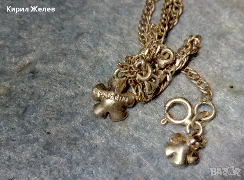 КРАСИВА СРЕБЪРНА ГРИВНА СРЕБРО 925 с ПОСРЕБРЕНИ ФЛОРАЛНИ ВИСУЛКИ PILGRIM с ЕМАЙЛ и СИН ЦИРКОН 37195