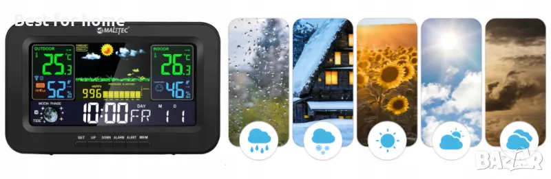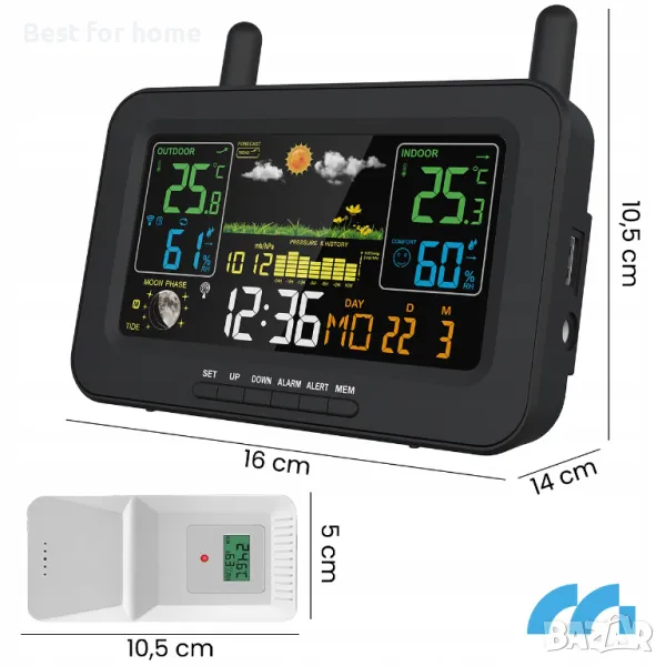 ???? Устройството поддържа до три сензора, което ви позволява да наблюдавате времето на различни места.