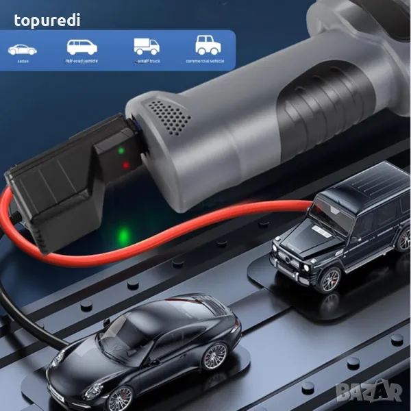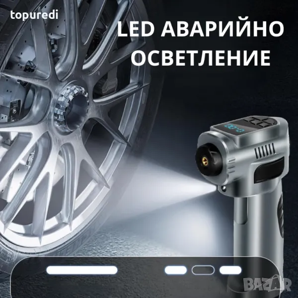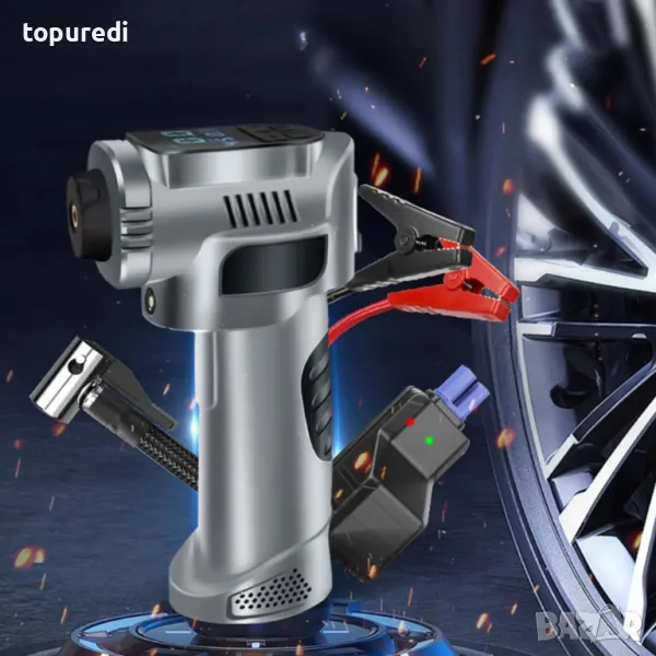 Преносимият компресор с Jump Starter 4в1 е многофункционално устройство, което комбинира автомобилен стартер, въздушен компресор, LED фенер и USB зарядно. Това го прави идеален спътник за всеки шофьор, особено при аварийни ситуации.