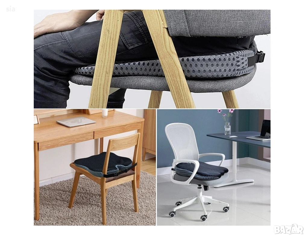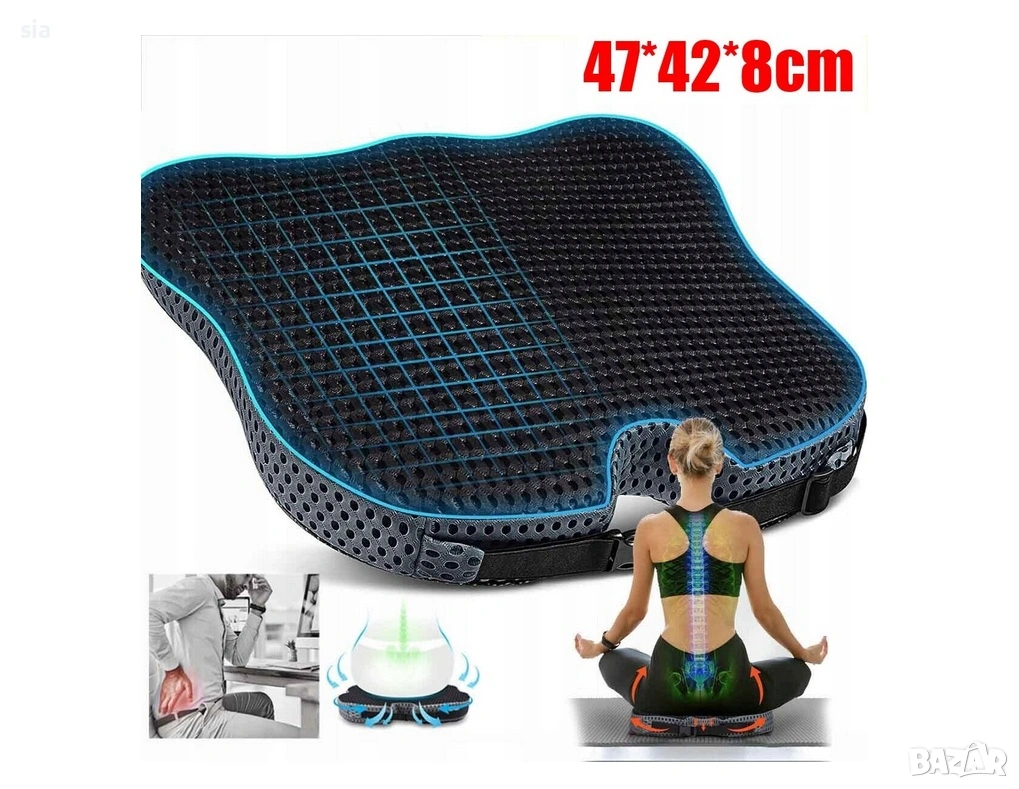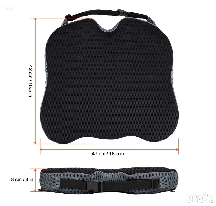 Ергономична седалка с мемори пяна и 3D дишаща мрежа – противохлъзгаща, с колан, за кола, офис и дом