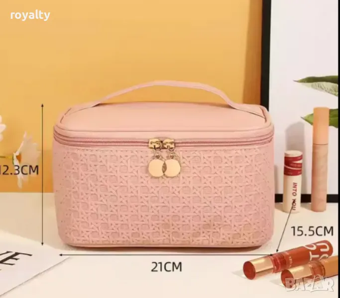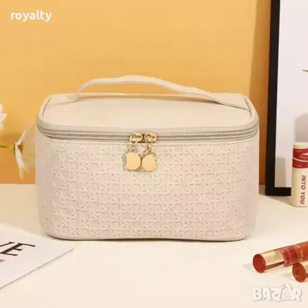 Висококачествена луксозна чанта за грим с цип, идеална за съхранение и пренасяне на козметика и аксесоари. Размерите на чантата са 21x15.5x12.3 см, което я прави компактна и удобна за ежедневна употреба или пътувания. Чантата е изработена от издръжливи материали, които осигуряват дълготрайност и стилен външен вид. Предлага се в пет елегантни цвята: Зелен, Кафяв, Лилав, Розов и Бял, като може да изберете този, който най-добре пасва на вашия стил. Отличава се с удобен цип за лесен достъп до съдържанието и е практична за организиране на гримове и малки аксесоари.