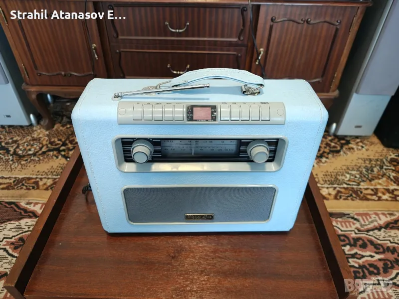 Страхотно ретро радио с отлична изработка и дизайн. Отлична работа и функционалност. Удобно и лесно за употреба. Отлично радио FM/MW. Снабдено със сиди плеър четящ както матрични, записвани така и МР3-ки. Красиво, много е красиво🤗🍀🤗