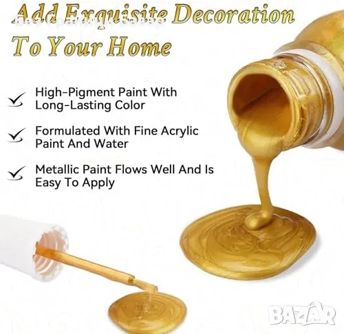 Нова Бързосъхнеща златна акрилна боя – арт и декор с висока покривност