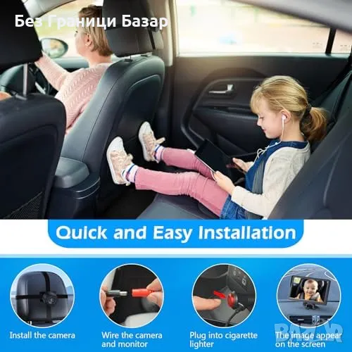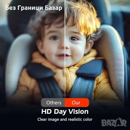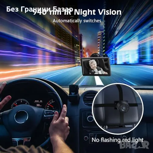 Нова Бебешка камера за кола 4.3" HD нощно виждане, 178° ъгъл, Монитор