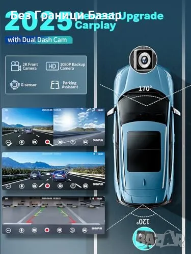 Нова Авто Мултимедия 9" CarPlay, Android Auto, 2K Камери, GPS за кола