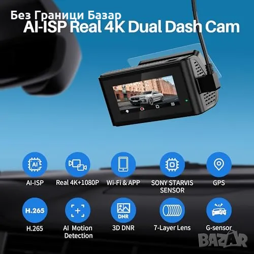 Нова 4K UHD Автомобилна Камера Предна Задна WiFi, GPS, WDR Видеорегистратор