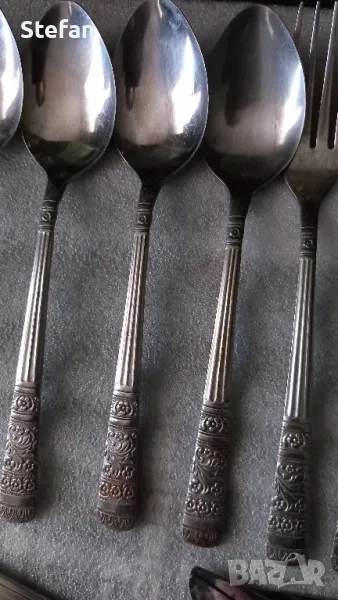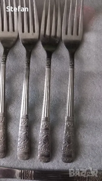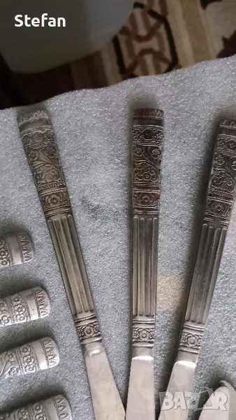 Стар руски комплект за хранене от 80-те години - в отлично състояние - 6 бр.лъжици +6 бр. вилици + 6 бр. ножове - /без забележки/.