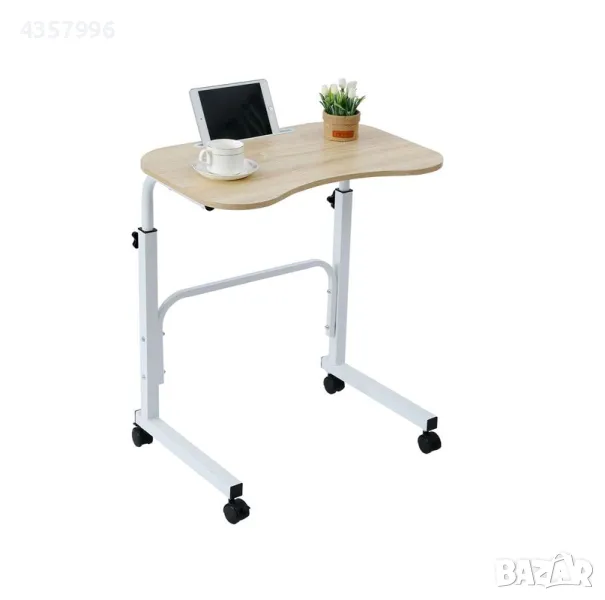 Странична маса - бюро с метални крака и колела. Повърхността има вдлъбнатина, върху която можете да прикрепите таблет. Преносим