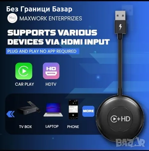 Нов Безжичен CarPlay адаптер HDMI за Apple/Android Бърза и лесна връзка