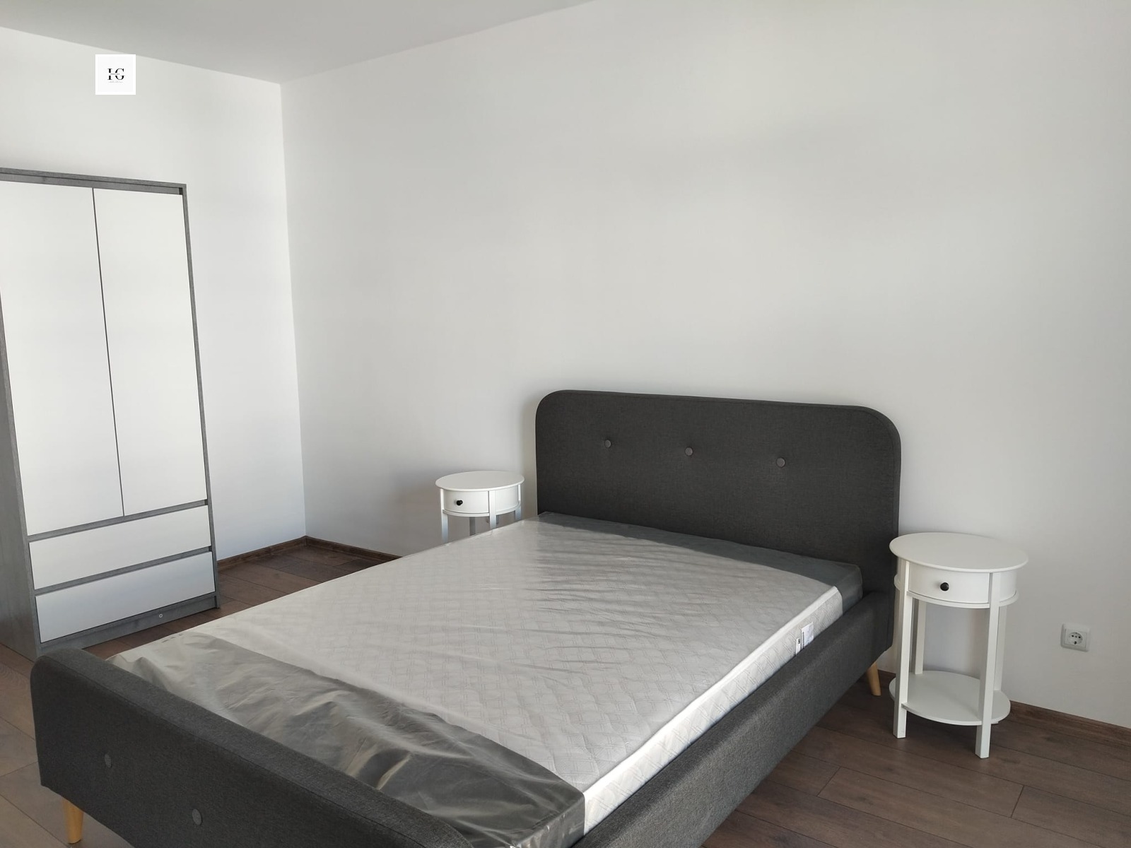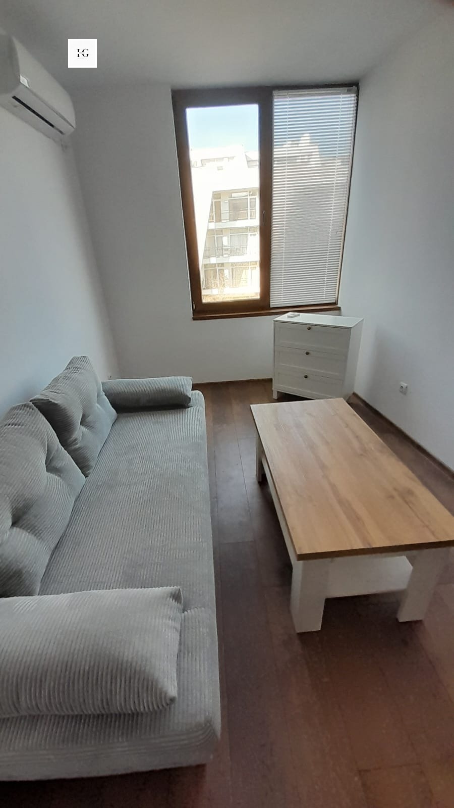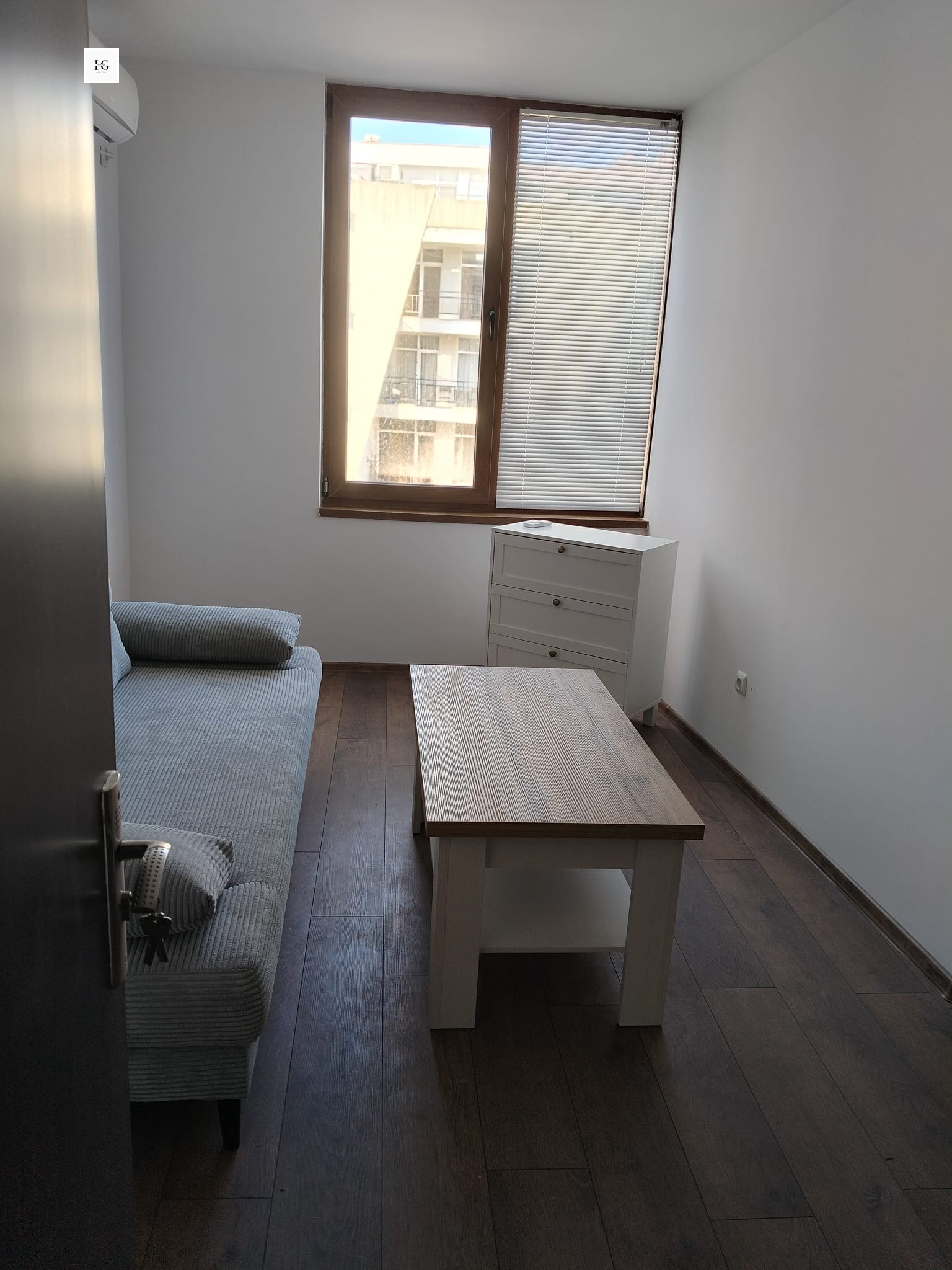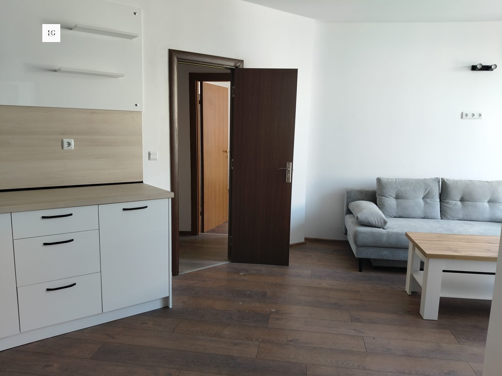 Разпределението на апартамента включва входно антре, просторна стая с кухненски бокс и мека мебел, както и санитарен възел. Апартаментът е готов за нанасяне и не изисква допълнителни инвестиции.