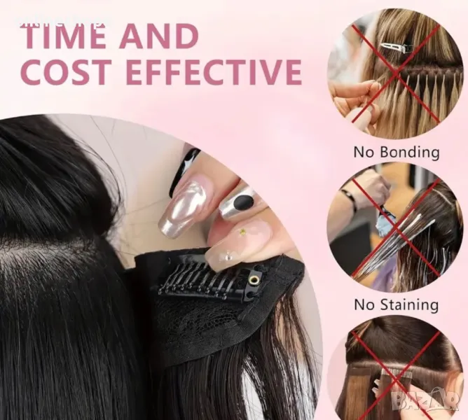 Комплектът съдържа 7 броя, термоустойчива коса, синтетичен косъм, с изключително естествен цвят и вид.