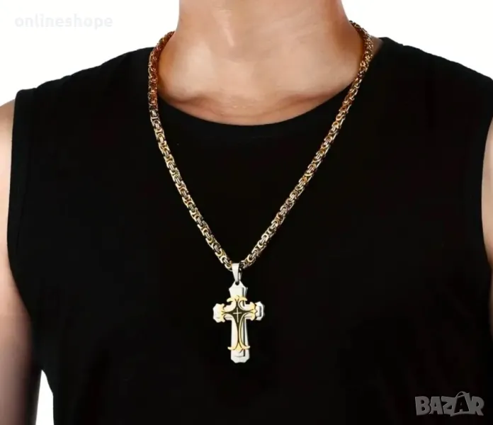 Мъжки синджир с кръст - 18к златно покритие - Неръждаема стомана , снимка 1 - Колиета, медальони, синджири - 49007066 Мъжки синджир с кръст - 18к златно покритие - Неръждаема стомана , снимка 2 - Колиета, медальони, синджири - 49007066 1/2