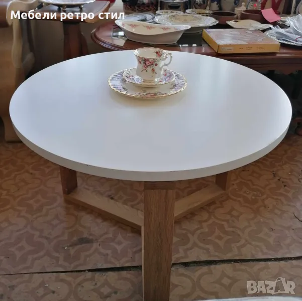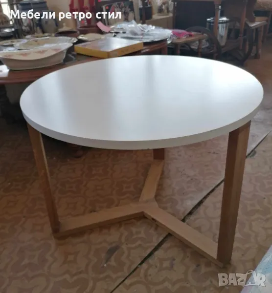 Бяла и елегантна масичка за кафе за вашето жилищно и офис пространство. Височина - 46 см. диаметър - 60 см. Цена 96 лв.