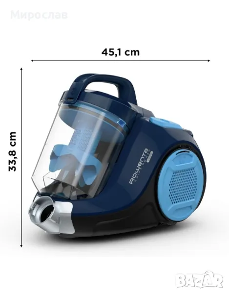 Rowenta Swift Power RO2981 900W Total Care, прахосмукачка без торба, циклонна система, 1,5 л резервоар, четка за паркет, накрайник 2 в 1 за слотове, тапицерия и косми от домашни любимци, 77 dB,• 3 Месеца гаранция.• Изпращане с Еконт и Speedy с преглед и тест.• Издаване на фактура. ЦЕНА С ДДС.• При интерес пишете за допълнителни снимки и информация.81