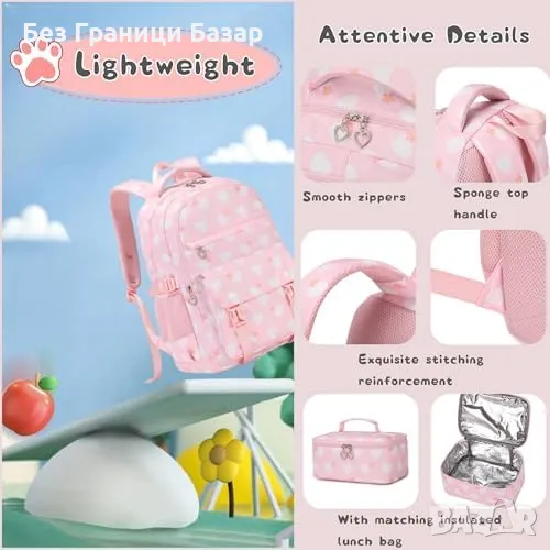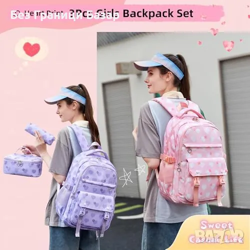 Нова сладка Детска раница с несесер и чанта за обяд – 3 в 1 комплект