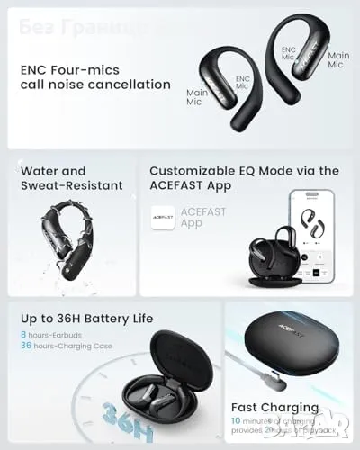 Открит дизайн: Насладете се на музика, без да се изолирате от околната среда.