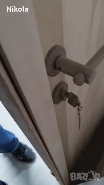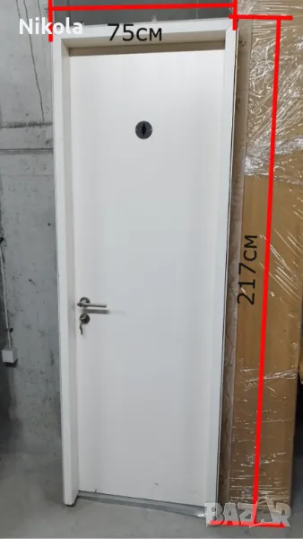 2) Лява врата - крилото е с височина 212,5см и ширина 68,5см, а вратата с касата е широка 77см и висока 217см като касата е широка 10см. Вратата е със секретна брава с два ключа