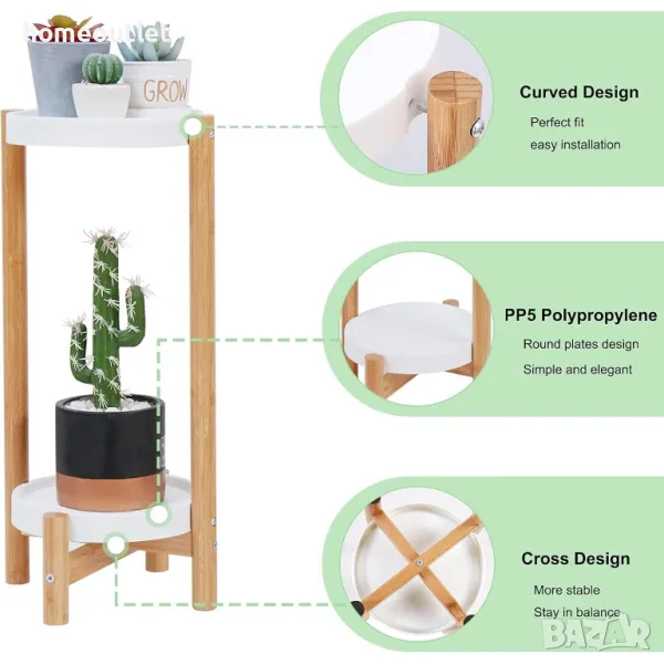 Изработен от екологичен бамбуков материал, този модерен минималистичен рафт е подходящ както за вътрешни, така и за външни приложения.