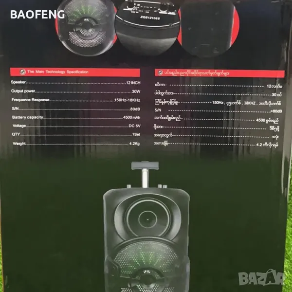 Караоке тонколоната е мощен и преносим високоговорител, създаден да превърне всяко събитие в истинско парти. С мощен 12-инчов бас драйвер, LED осветление и вградено дистанционно управление, този високоговорител е идеалният избор за празненства и открити събития. Безжичният микрофон и многобройните аудио входове (USB, AUX, Bluetooth) правят устройството универсално и лесно за употреба във всяка среда.