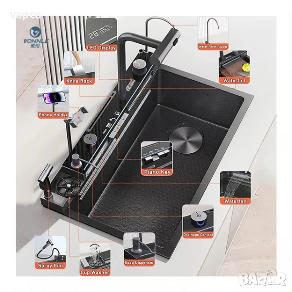 Чисто нова висококачествена мултифункционална мивка от неръждаема стомана и функции 20 в 1. Създава многофункционално работно пространство, за да можете удобно да миете плодове и зеленчуци с нейния