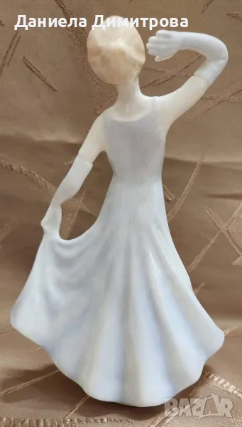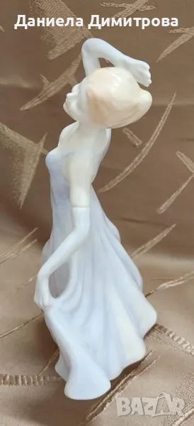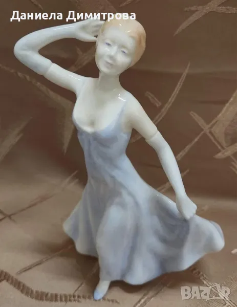 Patricia Hargreaves figures, England...фин костен порцелан. Дама с развята рокля в небесно синьо..висока 20,5см.