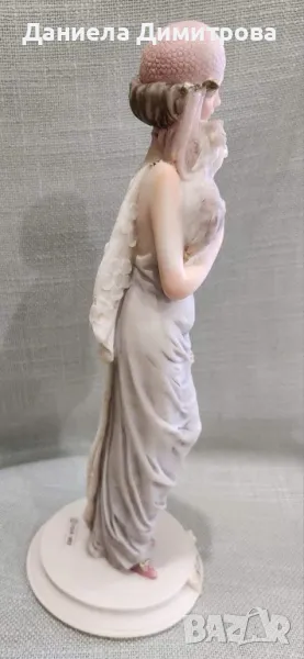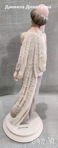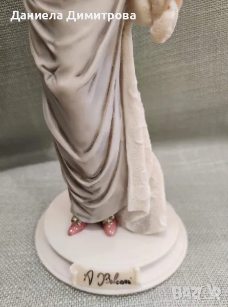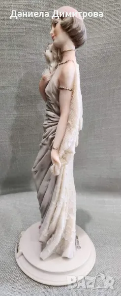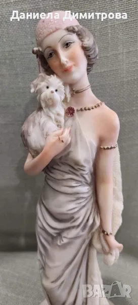 Елегантна дама със своя домашен любимец Capodimonte, ръчно изработена от скулптора Ауро Белкари. Висока 25см., основа ф 9,5см.